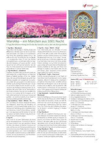 als das höchste religiöse Bauwerk der Welt und impo- M’Gouna wird Sie verblüfen. Über die Straße der 1.000 15.10. – 23.10.*