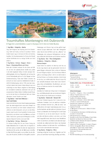 Nach dem Frühstück besuchen Sie in Dubrovnik im be- Nächtigung im zentralen 5 Sterne Hotel Budva
